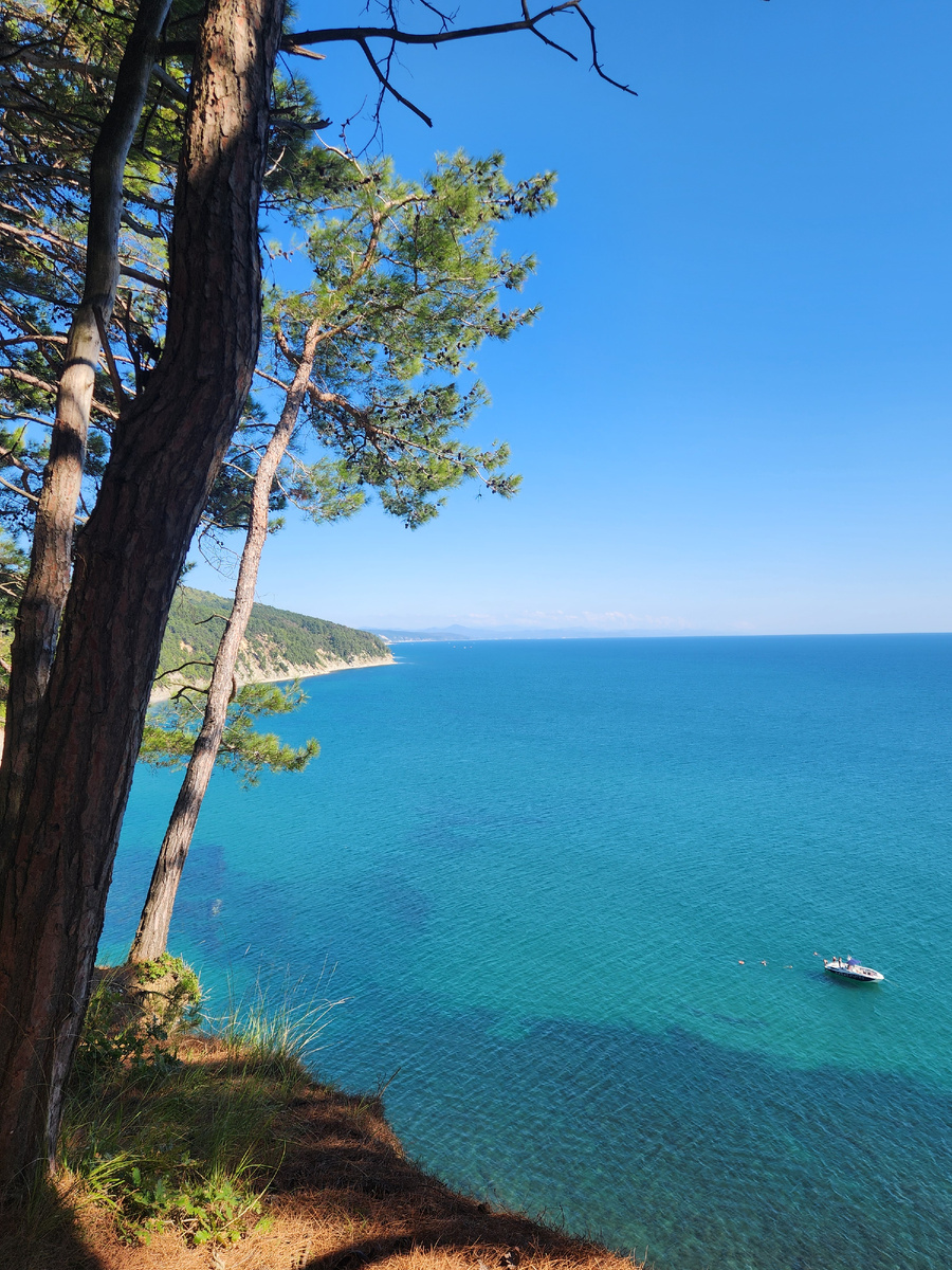Мы продолжаем исследовать территорию нашего дома отдыха. И надо сказать, это увлекательно. Территория огромная, примерно километр в длину и около полукилометра в ширину. Забора почти нигде нет, с моря естественной границей служит почти отвесный обрыв, со стороны местной речки - труднопроходимые заросли на очень крутом склоне. С третьей и четвертой сторон - лес. Теоретически зайти в дом отдыха из леса можно, но думаю, это редчайшие случаи. Мы решили отправиться в лес и поснимать красивые виды. По лесу протоптаны тропинки отдыхающими. Потом повернули назад и пошли другим путём, мимо отдельно стоящих домиков. В них тоже живут отдыхающие. Домики рассчитаны на две семьи. Потом случайно вышли на грунтовую дорогу и пошли уже по ней. Дорога петлючая, но проезжая. На крутом повороте, в низинке, увидели множество ветхих домиков, которые уже не используются, но почему-то не разобраны. Хотя понятно, почему - денег нет. Построены, наверное, были в шестидесятые годы. Тогда люди были рады путевк
