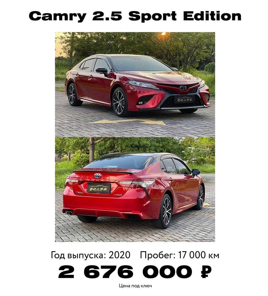 🚘Toyota Camry 2.5 Sport Edition — седан, который сочетает статус, комфорт и спортивный характер. Год выпуска: 2020 Пробег: 17 000 км Двигатель: 2.5 бензин, автомат Передний привод Цена: 2 676 000 😎 Спортивный дизайн, мощный мотор и отличная управляемость делают Camry идеальным выбором для города и трассы.
