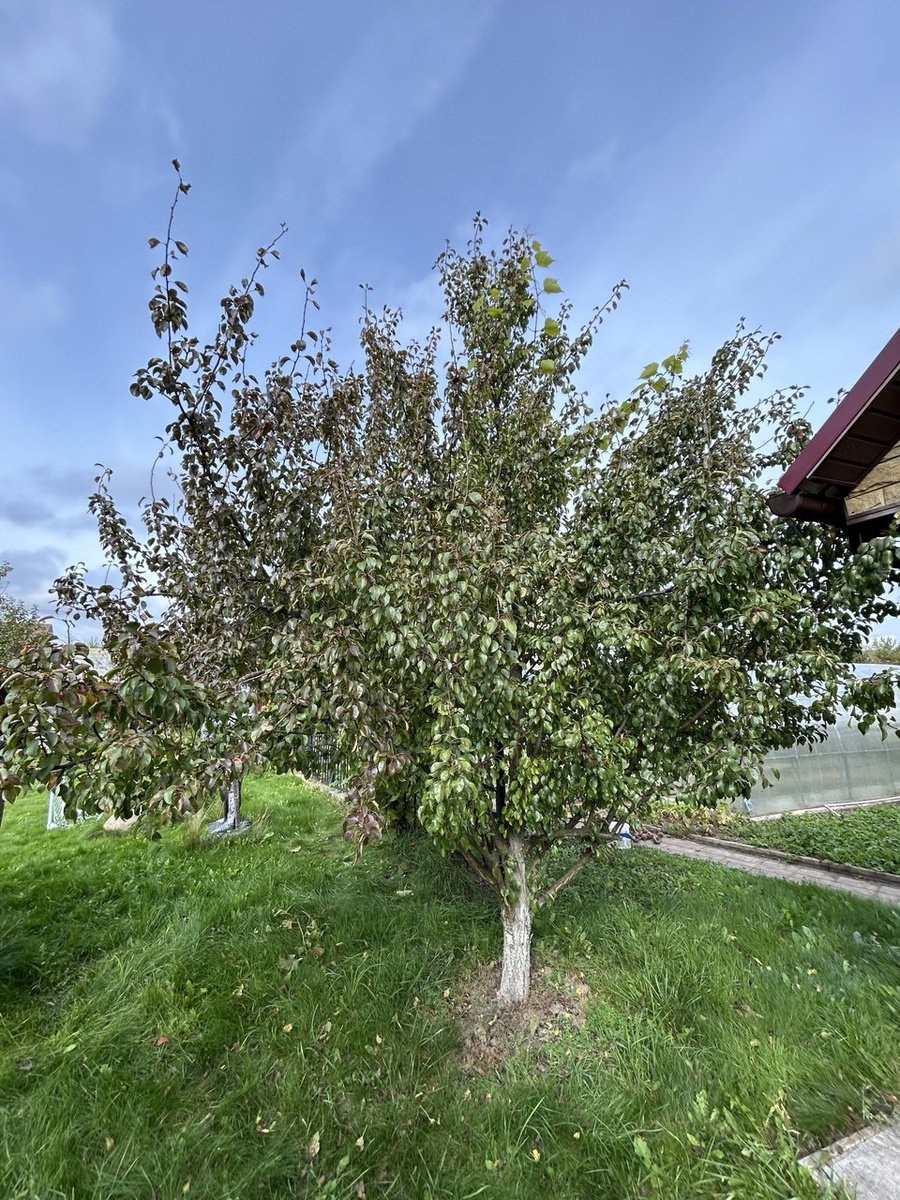 проводу осеннюю обрезку груши 21.09.25. Цель проредит крону, дерево немного загущено. Данное дерево было обрезано 2 сезона назад. Отросшие волчки уже загружены кольчаткой. Прореживание кроны позволит убрать излишки цветов, это убережет грушу от перегруза урожаем, соответственно качество плодов будет выше. После обрезки крона значительно уменьшилась в объеме. Но плодовой почки осталось много. Вырезка крупной ветви справицирует умеренный рост, на однолетних веточках заложаться новые кольчатки, на двухлетней древесине будет шикарный урожай. Правильно обрезайте свой сад