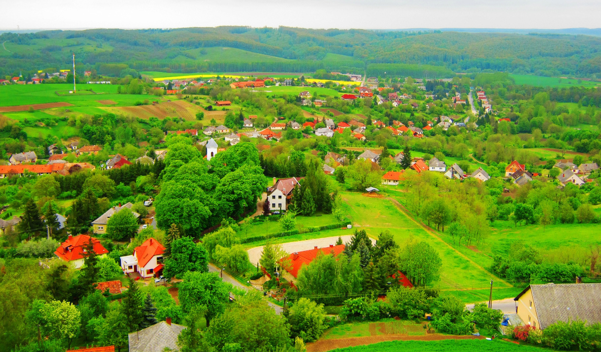 Деревня на четыре сотни человек застыла где-то в верхнем левом углу Венгрии. Застыла и застряла, посреди лесов, скал и полей, засаженных пшеницей вперемешку с жёлтыми полосами рапса где-то далеко-далеко. Полоски ярко пестрели, как яичные желтки, а дома с красными крышами как китайские фонарики пытались улететь отсюда подальше. Как можно дальше... Покосившийся чуть влево знак на въезде в город извещал — Groß Gott! — Welcome! — Isten Hozta! — и да, несмотря на перевод с русского на венгерский нашего родного «Добро Пожаловать» в виде невыговариваемого сочетания букв с умляутом (две ü и две ö), Isten Hozta означает именно его. А дословно — бог принёс... С приездом, скорее. Может, бог подаст? В отношении этой деревни вроде может быть, но нет, бог принёс вас местным жителям в подарок (и ваши денежки тоже), а вам их, местных. На немецком, что посередине знака, это значит «Да благословит вас бог», но пишется обычно Grűß, а не Groß, но да ладно, это ж Венгрия, а не Бавария... На заднем плане в