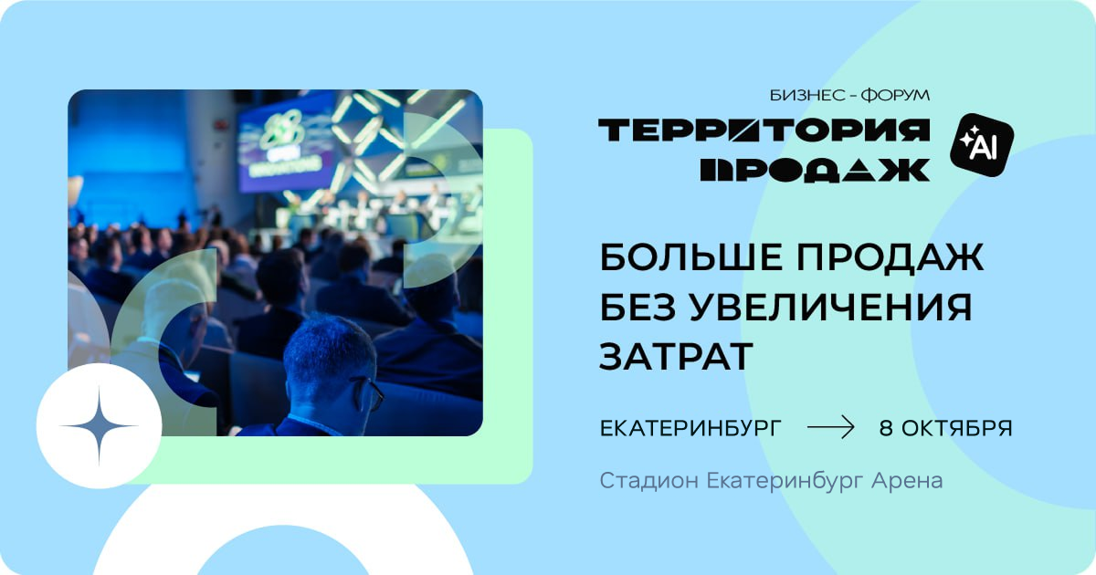 Представьте, что ваши продажи растут, а расходы остаются на прежнем уровне. Магия? Нет, так реально работают лидеры рынка. Хотите так же? Уже 8 октября в Екатеринбурге на бизнес-форуме «Территория продаж» вы узнаете, как расти в продажах без увеличения затрат, где искать новых клиентов и какие инструменты помогают их удержать. В программе: Будет интересно специалистам по продажам, РОПам, владельцам бизнеса и всем, кто хочет прокачать продажи. Атмосфера стадиона: азарт, энергия и воля к победе! Ждём вас 8 октября в конференц-зале стадиона «Екатеринбург Арена». Регистрация на мероприятие уже открыта, места ещё есть, но они очень быстро заканчиваются. Совет - не тяните! Пройдите регистрацию прямо сейчас!