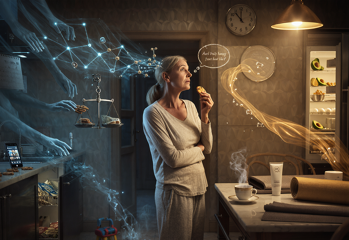 Знакомое чувство? Вечер. Ты наконец-то дома. Дела переделаны, дети уложены. Ты садишься на диван, открываешь соцсети... и через пять минут обнаруживаешь себя на кухне с рукой в пачке печенья 🍪 Ты не голодна. Ты — выжата. И это неконтролируемое желание «зажевать» тишину, стресс, усталость. А потом — чувство вины. «Опять сорвалась. Нет силы воли». Дорогая, стоп 📛 Это не про силу воли. Это про то, что твой мозг ищет самый быстрый способ получить дофамин — гормон «вознаграждения». И еда (особенно сладкое, жирное, соленое) — это самый простой и доступный способ. Ты не слабая. Ты — перегружена 😓 Почему мы «заедаем» именно вечером? 1️⃣Сила воли — иссякающий ресурс. За день ты принимаешь сотни решений, сдерживаешь раздражение, терпишь. К вечеру «ментальные мышцы» устают. И запреты рушатся. 2️⃣ Еда — это быстрое «обезболивающее». Сахар и жир временно приглушают тревогу и дают ложное чувство контроля. Но через 20 минут тревога возвращается, прихватив с собой чувство вины. 3️⃣ Усталость