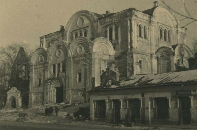 Фотография от 28 октября 1942 года, Собор Преображения Господня, город Брянск, Брянская область, во время фашистской оккупации. В 1694 году князь Даниил Афанасьевич Барятинский начал строительство храма в честь Рождества Пресвятой Богородицы, которое окончил его брат князь Алексей Афанасьевич Барятинский. Этот храм был освящен в 1697 году. В 1710 году был построен деревянный храм во имя святого мученика Иоанна Воина, который в 1730 году заменили на каменный. Фото 1 Фотография от 12 мая 1942 года, Собор Преображения Господня, город Брянск, Брянская область во время фашистской оккупации. Собор Преображения Господня был разобран в 1968 году. Фото 2 Колокольня Собора Преображения, фотография 28 марта 1942 года, город Брянск, во время оккупации фашистами города. К сожалению и колокольня и сам Собор в 1968 год были разобраны. Фото 3 Фотография ноября 1941 года, Собор Преображения Господня, город Брянск, во время фашистской оккупации. Кладбище фашистов в городе Брянск, перед колокольней.