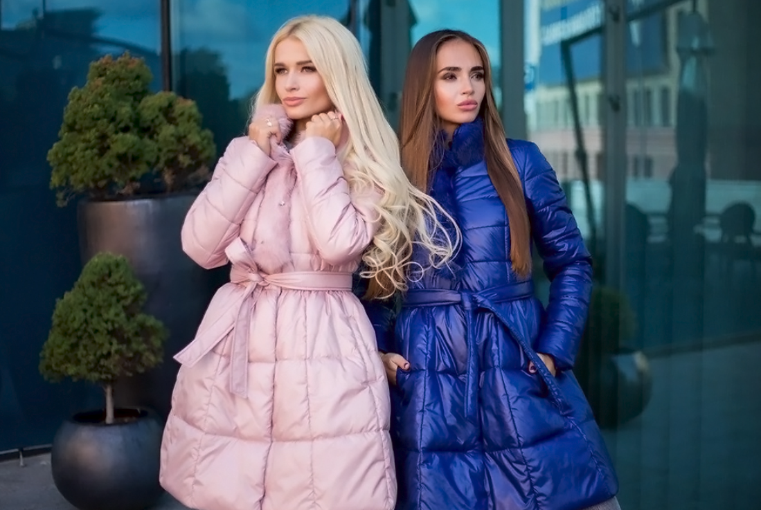 - Пуховик до середины бедра заканчивается на самой широкой точке