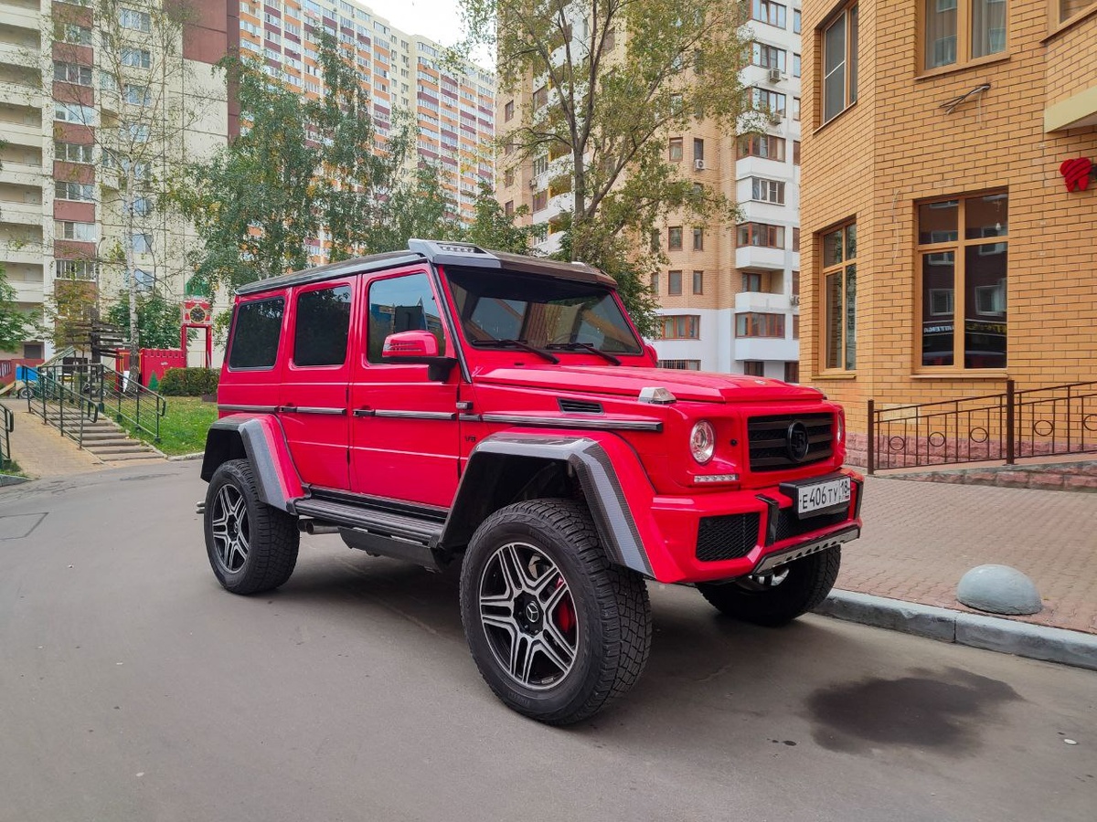 Довольно интересный Mercedes красного цвета удалось встретить в окрестностях своего города. Mercedes-Benz G-Класса 500 4x4 II (W463) 4 Рестайлинг, 2016 г. представляет из себя эксклюзивную высокопроизводительную модификацию дорожным просвет в 450 мм. Автомобиль оснащался битурбированным бензиновым двигателем V8 объёмом 4.0 литра мощностью 422 л.с., агрегатированным с 7-ступенчатой автоматической трансмиссией 7G-TRONIC и полноценной системой полного привода с тремя блокирующимися дифференциалами. На момент выпуска автомобиль оценивался в России в около 15-25 миллионов рублей в зависимости от комплектации. Похожая машина принадлежала известному блогеру Гусейн Гасанову Московская область, г. Реутов | 21.09.2025 г.