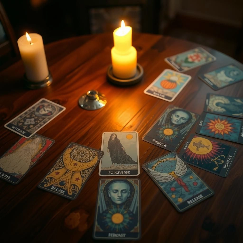 Я взяла свою потёртую колоду Таро, чувствуя, как её смятение и боль передаются через мои пальцы, и предложила сосредоточиться на вопросе: "Что мне принесёт прощение, и что – отказ от прошлого?" Мы начали расклад, чтобы увидеть возможные пути её судьбы.