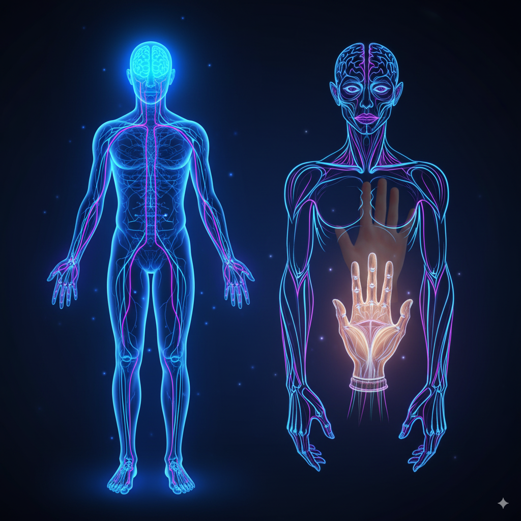 Закрой глаза и пошевели рукой — ты сразу знаешь, где она. Даже если темно, даже если не смотришь. Как мозг это делает? И почему у некоторых людей «чешется» отрезанная нога или рука, которой давно нет? Заглянем в глубины мозга — там, где рождается наше чувство тела. У нас есть пять классических чувств, но есть и ещё одно, которое редко упоминается — проприоцепция. Это способность мозга чувствовать положение тела в пространстве. В коре головного мозга есть соматоcенсорная карта — «гомункулус». Это забавная схема, где размер частей тела зависит не от их реальных размеров, а от количества нервных рецепторов. У нас гигантские руки, губы и язык на этой карте — потому что там особенно много сенсоров.