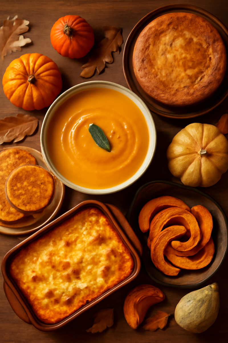 - Приготовление: Отварите тыкву, сделайте пюре. Смешайте с яйцами, молоком, добавьте сыр, посолите и поперчите. Выпекайте в духовке при 180°C 25-30 минут.