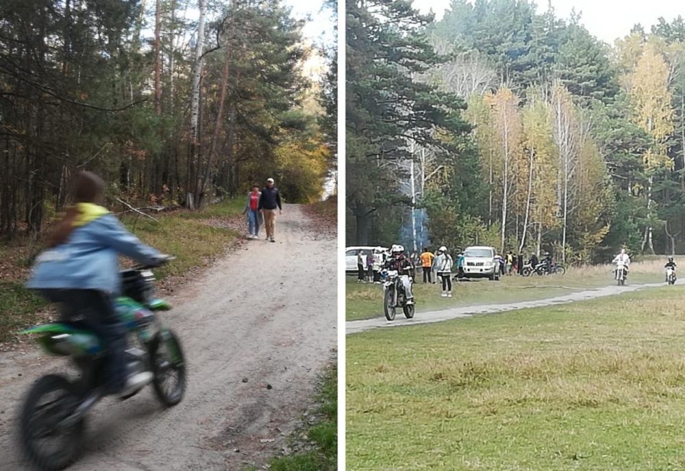 Подростки устраивают гонки на мотоциклах по лесной поляне с отдыхающими в Первомайском районе Новосибирска