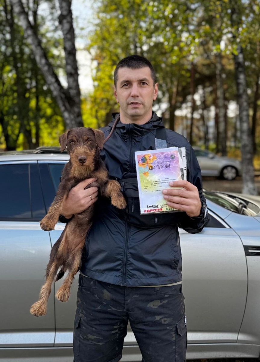 20.09.2025, г. Брянск, Национальная выставка ранга САС-ЧФ. Ева-Пуля #изстепногоалтая (Ulf Vom Rexon Forst х Эшерра #ИСА) - JunCAC, ЛЮ. Поздравляем владельца нашей выпускницы - Дмитрия Ларина с успешным дебютом на выставке Евы-Пули. Бородаточка😍😍🥰 #питомникягдтерьеров #ягдтерьер #немецкийохотничийтерьер #ягдынавыставке
