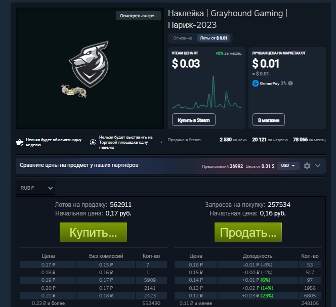 Вот например на эту наклейку я буквально позавчера ставил ордера на продажу и она закупилась.