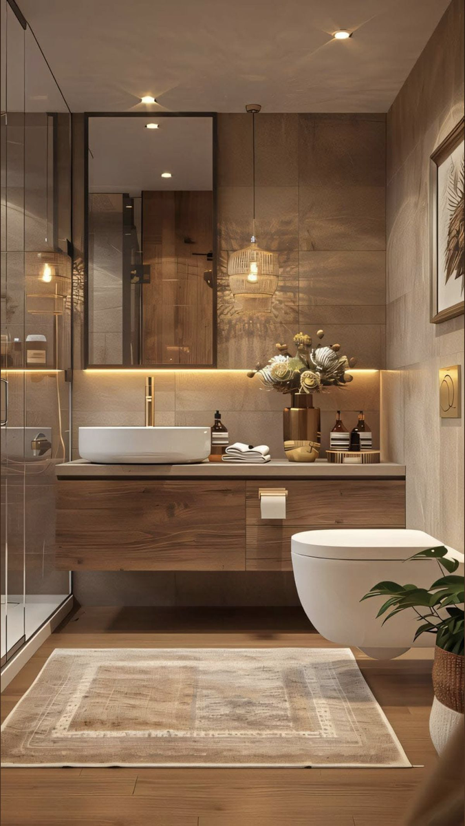 Сколько людей делают дорогой ремонт в ванной и в итоге получают стандартную «коробку» с плиткой до потолка и яркой люстрой? Вроде всё новое, чистое, дорогое — но удовольствия нет. Ванная превращается в место «быстро помыться», а не в зону расслабления. А ведь именно ванная может быть вашим личным мини-спа. Для этого не нужны миллионы и дизайнерские ухищрения — достаточно пяти приёмов, которые меняют ощущение от пространства полностью. Белый яркий свет в ванной — главная причина, почему даже дорогая плитка смотрится дешёво. В таком освещении кожа выглядит бледной, плитка — холодной, а атмосфера напоминает стоматологический кабинет. Что делать: Тёплый свет всегда ассоциируется с уютом и дорогими интерьерами. Пестрая плитка, яркая мозаика и бордюры до сих пор делают ванную похожей на прошлый век. А однотонные поверхности, наоборот, создают ощущение простора и статуса. Решение: Шторка на пластиковой рейке моментально «убивает» дорогой ремонт. Даже если плитка итальянская, а сантехника н