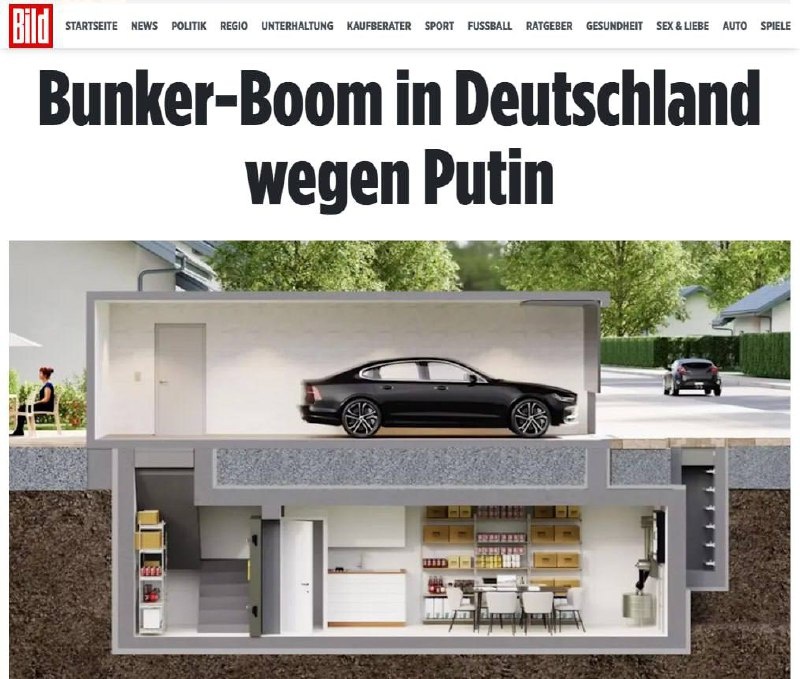 Немцы в панике строят бункеры из-за страха войны с Россией В Германии резко вырос спрос на строительство частных бункеров, пишет Bild. Немцы опасаются возможного нападения России на страны НАТО. С января количество запросов на возведение укрытий увеличилось на 50%. Особенно спрос вырос после инцидента с беспилотником в Польше. По данным издания, консультации по строительству бункеров заказывают все чаще. Стоимость частного бункера площадью около 30 кв. м составляет €30—50 тыс. (примерно 3—5 млн рублей). Как же они боятся... 👍 БайБайден. Подписаться