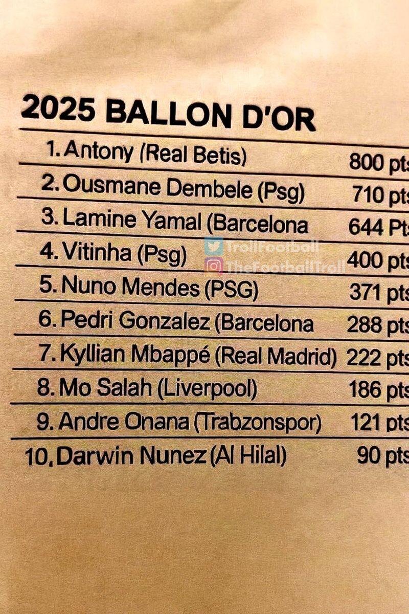В сеть утекли результаты голосования на "Золотой мяч", который будет вручен сегодня вечером 😹