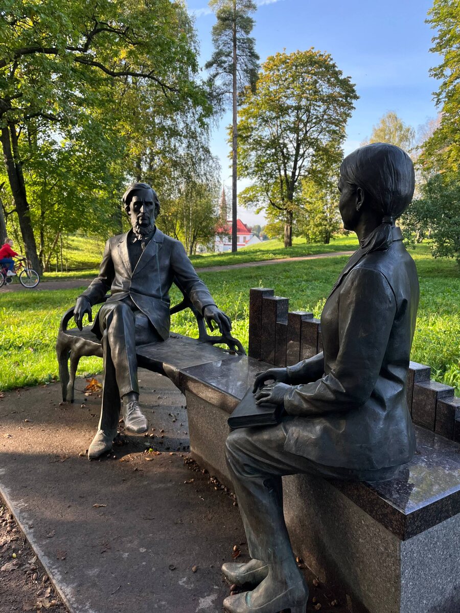 ☀️ В Гатчине мы поймали, наверное, последний по-настоящему тёплый и солнечный денёк этой осени — на улице было целых +20! Сначала заглянули в «Крендель» перекусить (но, честно, выборгский вкуснее 😅). А потом отправились гулять по Приоратскому парку. Там встретили 🦌 лося, Бабу Ягу и самое главное — скульптурную композицию «Связь поколений. Ленинградский учитель». Учитель с книгой и рядом ученик — очень трогательный символ того, как знания и опыт переходят от старших к младшим. Ушинский писал, что образование зиждется на прочной основе, которую создают поколения педагогов. Вот и этот памятник — напоминание о вечной ценности труда учителя и о связи поколений. 🌿 И как символично — всё это совпало с началом новой учебной недели 📚✨. Пусть она будет успешной и плодотворной у каждого из нас! 💛