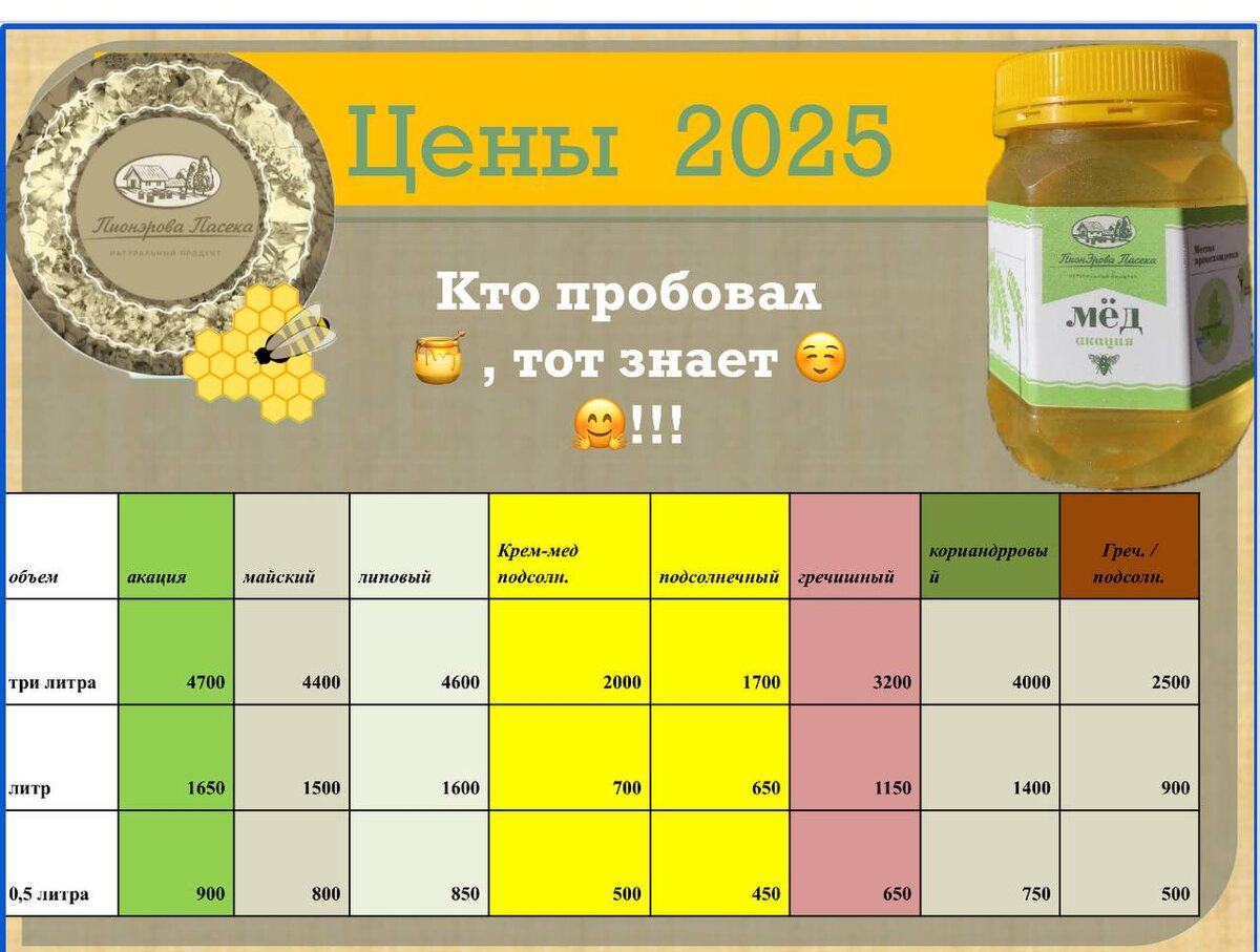 Друзья, всем доброе утро и прекрасной недели 🐝🐝 Итоги нашего начала сентября :докачали все наши Липецкие и Зерноградский и Адыгейские прицепы и у нас появилось еще пару сортов🙏горное разнотравье и смесь гречихи с подсолнечником 🤗 И так по итогу сезона добавила все сорта , цены остались прежние ✅