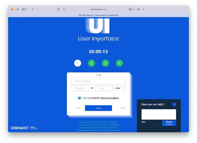 Страшный сон любого дизайнера — это сайт User Inyerface с худшим интерфейсом, который только можно представить. Он создан так, что разобраться в нем почти невозможно.