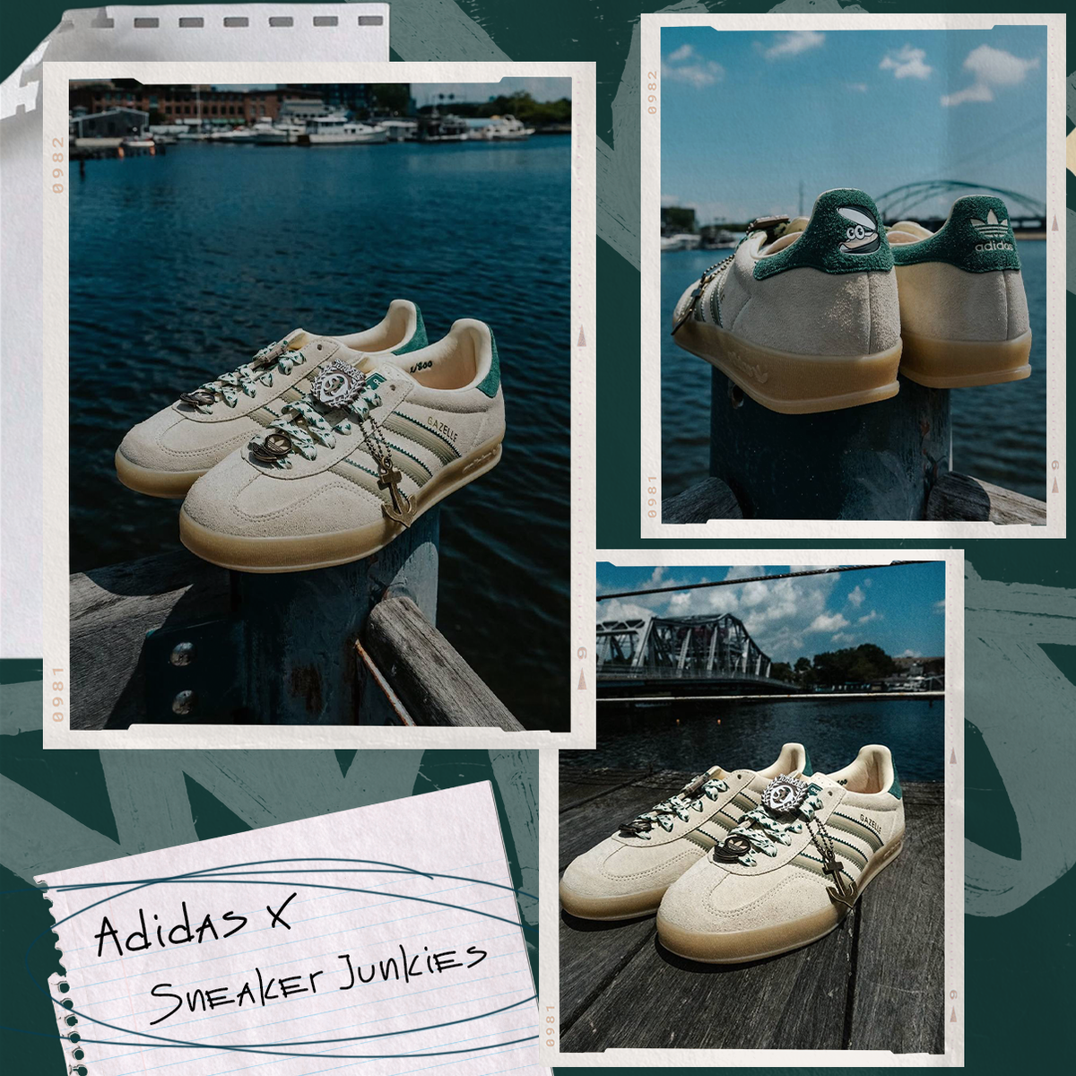 Мы про новую пару Adidas и Sneaker Junkies — Gazelle «Clam Chowder». Отправляем ее в «Прожарку», потому что история у новинки интересная. Как вы думаете, чем вдохновлен коллаб? Супом Чаудер из Новой Англии. Верх из белой кожи ассоциируется с бульоном для похлёбки, серые полоски с моллюсками, а зелёные шнурки напоминают петрушку. Брелок в виде якоря — отсылка к морской истории Род-Айленда. Выпущено всего 800 пар, так что можно считать лимиткой. В целом, нам нравится — вышло лаконично, минималистично и приятно глазу. От нас 8 из 10. А от вас? Больше интересного на нашем сайте POIZON