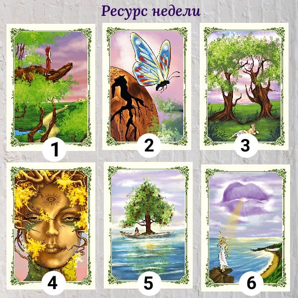 Перед вами 6 карт. Посмотрите на них и выберете ту, которая прям вот нравится. Глядеть на которую вам радостно и приятно. Выбирайте только одну карту!