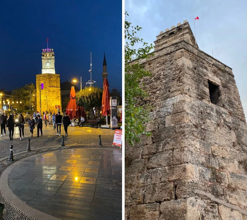 Часовая башня - единственная сохранившаяся из 80 других башен крепостной стены Антальи. Каменная постройка выделяется на фоне городского пейзажа. Рядом с ней любили собираться жители Антальи во времена Османской империи в XIX веке. Да и сегодня мало что изменилось: вокруг — средоточие кафе и ресторанов, рядом — площадь Республики, где можно пообедать с красивым видом. Проще говоря. Турция