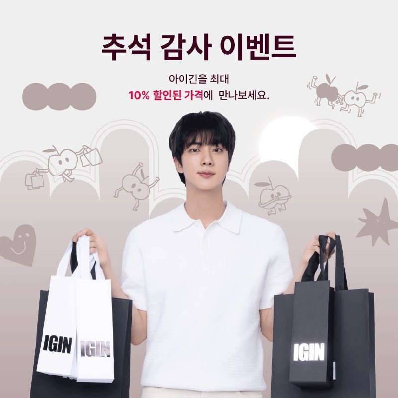 🐾 Igin в Х: Теперь нам осталось только принимать комплименты! ( ˘ ³˘) Большая распродажа от AiGoin, посвященная щедрому празднику Чусок, со скидками до 10% на все товары! Закупайтесь впрок! *´︶*)ノ" Открытие через некоторое время, в 12:00! #JIN @kumihobts