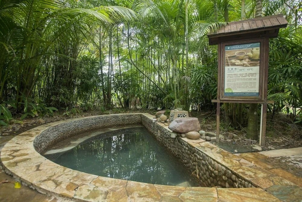 Горячие источники Чжуцзян Наньтянь Тысячи лет назад в этой части острова были мощные извержения вулканов. Раскалённая лава покрывала всю территорию нынешней здравницы, а спустя время здесь забили целебные источники. О лечебных свойствах термальных вод местные жители знали очень давно. На протяжении столетий они отдыхали здесь и укрепляли своё здоровье. Неспроста в переводе «Наньтянь» означает «Долина долголетия». Сегодня на территории в 12 гектаров раскинулся современный благоустроенный курорт с уютным отелем и рестораном, открытыми кафе и чайными домиками. Но главное — это больше тридцати термальных бассейнов с температурой от +32 °С до +57 °С и различным составом воды. Удобно, что у каждого бассейна есть пояснительная табличка на китайском, английском и русском языках. Сюда приезжают на целый день, чтобы искупаться в лимонных, чайных, цветочных, кофейных, женьшеневых и винных купальнях. Или расслабиться на шезлонге в зоне у большого бассейна. Или получить пилинг всего тела от рыбо