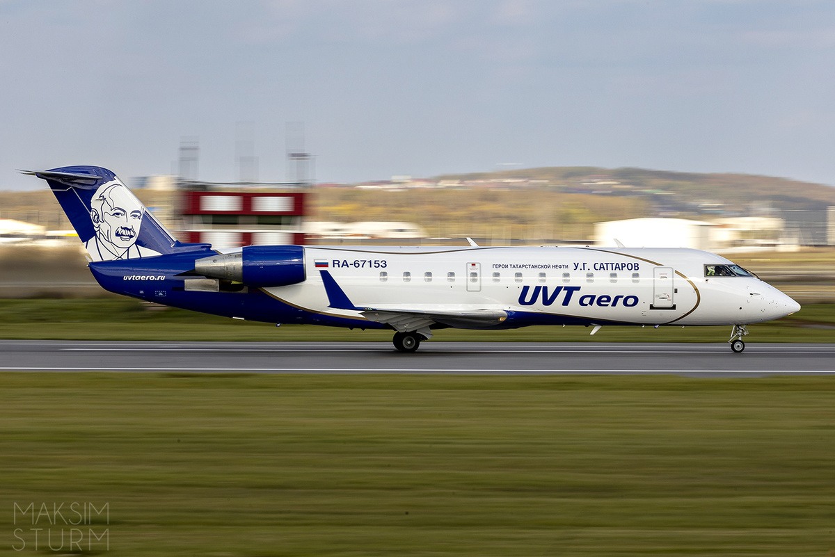 Этой осенью Авиакомпания «ЮВТ АЭРО» обновила ливрею одного из своих самолетов которая подчёркивает историческое наследие и вклад выдающихся личностей в развитие нефтяной промышленности Татарстана. Первый самолет получил ливрею посвящённую У.Г. Саттарову — герою татарстанской нефти, символу профессионализма и стойкости. Bombardier CRJ200 RA-67153 Узбек Газизович Саттаров — выдающийся инженер и организатор нефтяной отрасли Татарстана, один из пионеров освоения месторождений региона. Его многолетний труд и новаторские подходы сыграли ключевую роль в развитии добычи нефти, благодаря чему Татарстан стал одним из ведущих нефтедобывающих регионов России. Саттаров известен преданностью делу, высоким профессионализмом и вкладом в создание эффективных технологий. Проект приурочен к 75-летию компании «Татнефть» и направлен на сохранение памяти о людях, благодаря которым регион достиг высокого уровня в нефтяной промышленности Ливрея выполнена в сине-золотой цветовой гамме, её отличает оригинальны