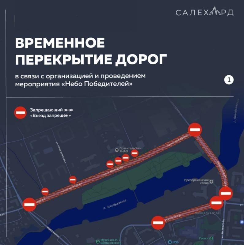 🚧 В Салехарде вечером будут временно перекрывать дороги в связи с подготовкой к световому шоу