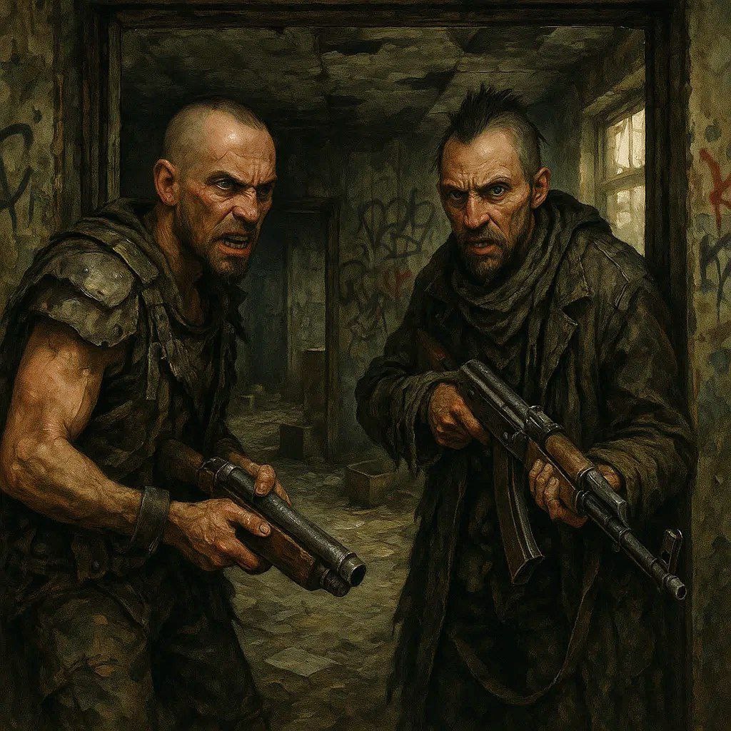 Один рейдер хмыкает и отводит ствол, второй недовольно сплёвывает.