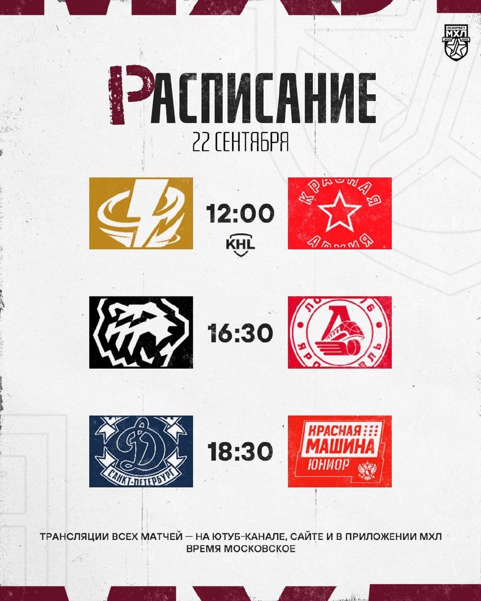 «Тайфун» вновь принимает московскую команду, «Белые Медведи» встретятся с «Локо-76», а Санкт-Петербурге местное «Динамо» сыграет с «Красной Машиной Юниор» 🏒 @mhlrus
