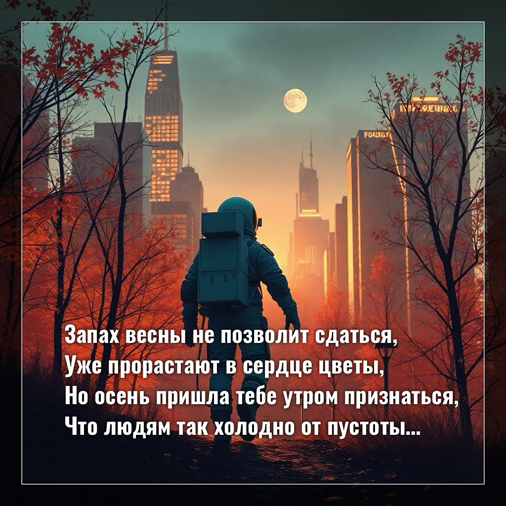 Запах весны не позволит сдаться, Уже прорастают в сердце цветы, Но осень пришла тебе утром признаться, Что людям так холодно от пустоты, Которая утром приходит и вечером, Которая в Душу забраться стремится, А ты до сих пор ничего не сделал, Чтоб в жизни счастьем своим насладиться, И эти мысли, как камень на дно, Тянут и вот ты уже не плывёшь, Ты где-то сквозь тину одну пробиваешься, В которой сплетни, слухи и ложь, А также себя сам на дно опускаешь, Когда смотришь вдаль на берег чужой, Это такая большая ошибка - По жизни бояться стать просто собой, Это такая огромная пропасть, В которую падаешь, не замечая, А Бог каждый раз тебе Руку даёт, Поит горячим божественным чаем, Чтоб сердце и Душу твои отогреть И перестать жить жизнью чужой, У каждого в мире есть только свой путь, Осталось позволить себе быть собой.