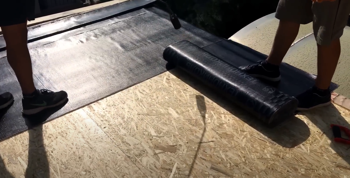 Самоклеящийся рубероид: Необходимо тщательно прикатать стыки, чтобы обеспечить надежное сцепление клеевого слоя.