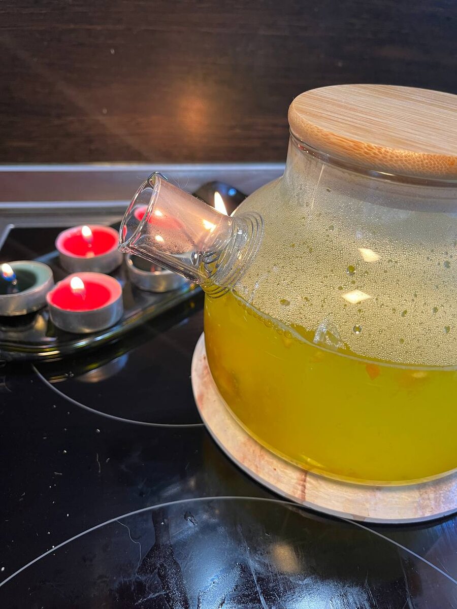Витаминный чай из облепихи и киви для холодных вечеров Вот-вот придут холода. И в этот период так приятно укутаться в плед, включить любимый сериал и пить вкусный чай или глинтвейн. Я обожаю осень — она про замедлиться, остановиться и просто пожить. Конечно, рецептов тёплых чаёв в интернете море, но я решила поэкспериментировать и сделать свой вариант. Получилось необычно и очень вкусно. Ингредиенты: • апельсин — 1 шт. • мёд — 1 ч.л. (у меня жидкий; если любите послаще, возьмите 2) • облепиха — 150 г (половина замороженной упаковки) • киви — 2 шт. (очищенные) Как готовить: • апельсин нарезаем вместе с кожурой • добавляем облепиху • киви режем и тоже отправляем в миску • добавляем мёд • перебиваем всё в блендере • разливаем по формочкам и убираем на ночь в морозилку На следующий день достаём — и у вас готова основа для витаминного чая. Просто залейте кипятком и наслаждайтесь. КБЖУ (на 100 г): 49 ккал • Б 0,7 г • Ж 0,5 г • У 11 г 🌺🌺🌺 Хочешь меньше стоять у плиты, но чтобы всегда была