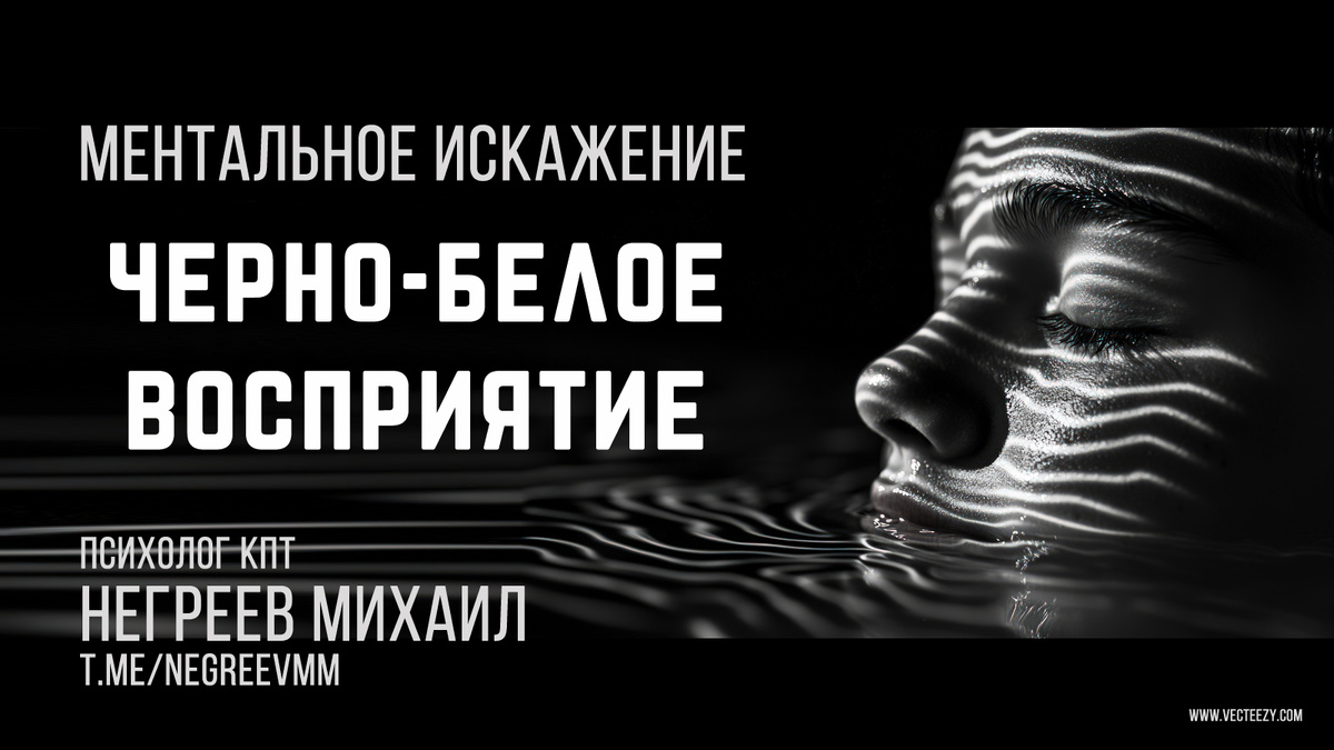 Черно-белое мышление или мышление по принципу „всё или ничего“ — это искажение интерпретации, при котором человек склонен воспринимать действительность в двух крайних, противоположных категориях, без учета промежуточных или сложных вариантов. То есть, если что-то не является идеальным (белое), то оно автоматически считается полным провалом (черное). Промежуточных вариантов не существует. Как оно проявляется? Примеры Человек с таким стилем мышления использует в речи жесткие категоричные формулировки: · В работе/учебе: «Если я не сдам этот экзамен на отлично, я полный неудачник». «Либо я получаю повышение, либо моя карьера закончена». · В отношениях: «Если мы поссорились, значит, мы не предназначены друг для друга». «Идеальный партнер никогда не должен меня расстраивать». · В самооценке: «Я должен быть идеальным родителем, а иначе я вообще никудышный». «Раз я сорвался с диеты и съел пирожное, то теперь можно есть всё подряд». · В оценке других: «Все люди эгоистичны и плохие». · В быту: «