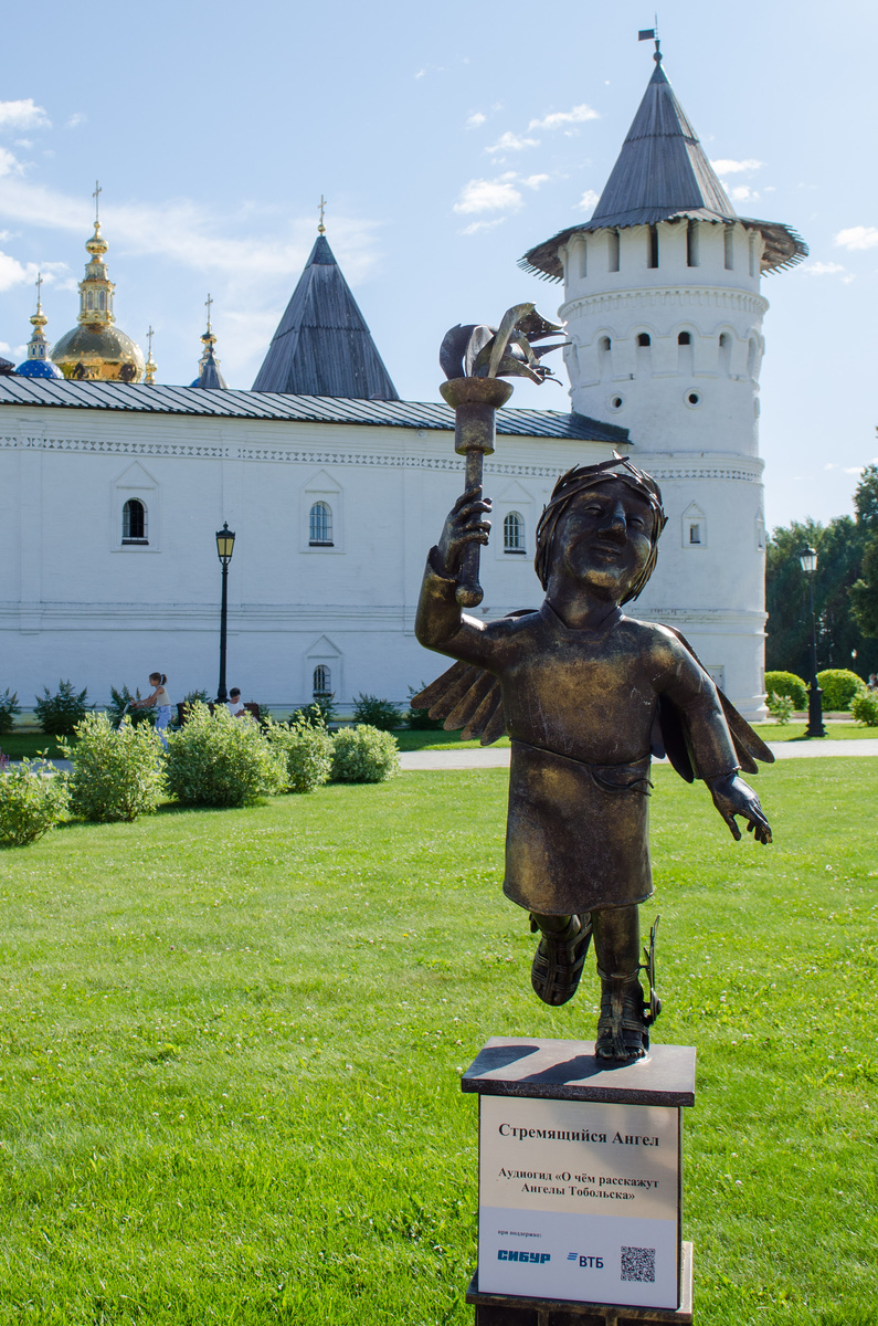 Серия из 11 скульптур Дмитрия Прибыльнова. Художественные объекты интегрированы в знаковые локации города. Мы нашли, к сожалению, лишь 8 ангелочков. Нашли бы всех, но время на маршруте, выделенное на город, ограничено. О чём же расскажут ангелы Тобольска? Стремящийся ангел — настоящий символ спортивного духа! Он вдохновляет атлетов на рекорды и напоминает о Тобольском марафоне, который стал яркой страницей истории города. Милосердный ангел будто шепчет: «Не проходите мимо чужой боли». Его история связана с трагическими судьбами, которые, увы, нередко встречались в прошлом Тобольска. Странствующий ангел словно желает удачи всем, кто в пути — путешественникам, исследователям, тем, кто ищет новые горизонты. Архитектурный ангел восхищается красотой зданий Тобольска. Неудивительно — местная архитектура вдохновляет. Музыкальный ангел дарит гармонию. Он словно напоминает о мелодиях композитора Александра Алябьева, чьё творчество связано с этими местами. Улыбающийся ангел — воплощение