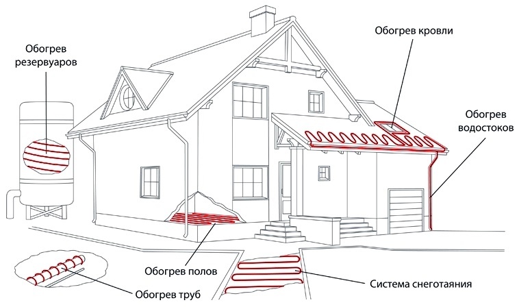 - Бытовое использование: Обогрев водопроводных труб, кровли, водостоков, чтобы предотвратить замерзание зимой.