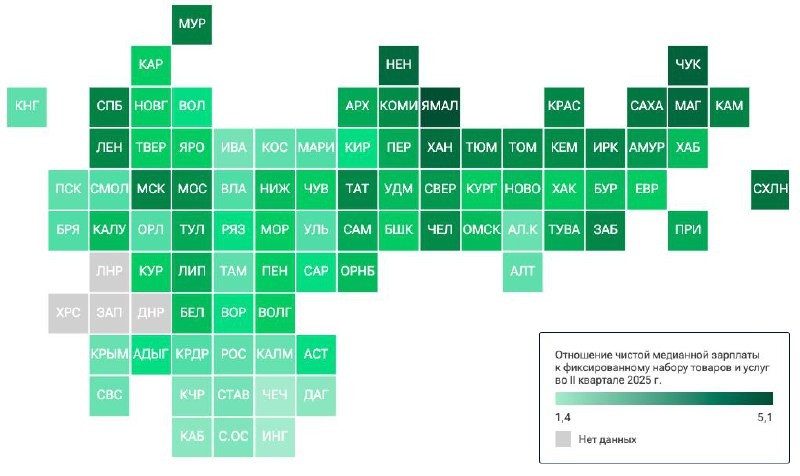 Во втором квартале 2025 года чистая медианная зарплата в Марий Эл насчитывала 46 700 рублей. По данным РИА Новости, в рейтинге регионов России по зарплатам республика находится на 66-м месте. Здесь во втором квартале этого года отношение чистой медианной зарплаты к фиксированному набору товаров и услуг насчитывает 2,1. Если говорить об отношении медианной зарплаты Марий Эл к значению по России, то во втором квартале 2025 года оно составило 0,7. Отметим, что соседний Татарстан находится на 14-м месте (61 909 рублей), Нижегородская область на 35-м (56 958 рублей), Чувашия на 49-м (50 061 рублей) и Кировская область на 59-м (50 377 рублей). 📸 Скрин: РИА Новости Подписывайтесь на наш канал в МАХ!