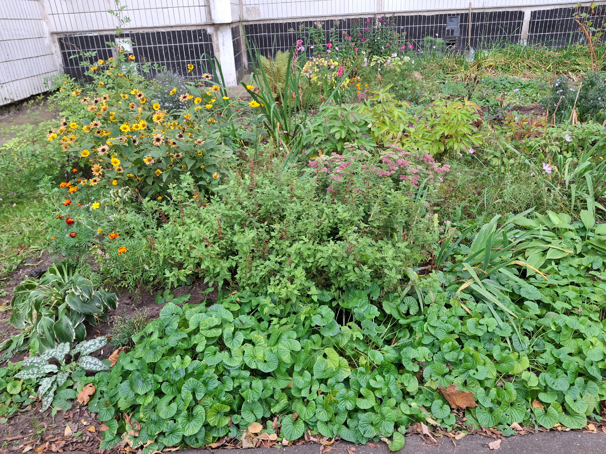 Вчера у нас, в Подмосковье, было тепло. Пошла на клумбу, разбиралась с этой стороной. Тут все заросло, ирисы заполонила фиалка. Сквозь ирисы пророс вербейник. Ирис еле выкопала. Часть посадила назад. И этот ирис выкопала весь, кусочек посадила. Остальное рассадила по клумбе. Здесь ирисы и ромашка, которая проросла в ирис и выкопалась вместе с ним. На брошенной клумбе тоже посадила ирисы и вербейник. Вербейник пророс в ирис и выкопался вместе. Посадила флоксы, что младшенькая привезла. Почему-то листья у них стали белесые. Пока возилась на клумбе, приходил котик или кошечка :) Слева гладиолус отцветает, справа две стрелки распускаются. Справа такой же гладиолус, что и отцветает. А слева темный. Вот такой. Надеюсь, успеет распуститься. Хорошо цветет герань. Все выпускает и выпускает цветочные стрелки. Опять зацвел вербейник. Теперь о грустном. Росла на клумбе вот такая высокая космея. Два куста было. Вырвали с корнем, цветы оборвали, остальное бросили. На клумбе оборвали бархатцы. И здес