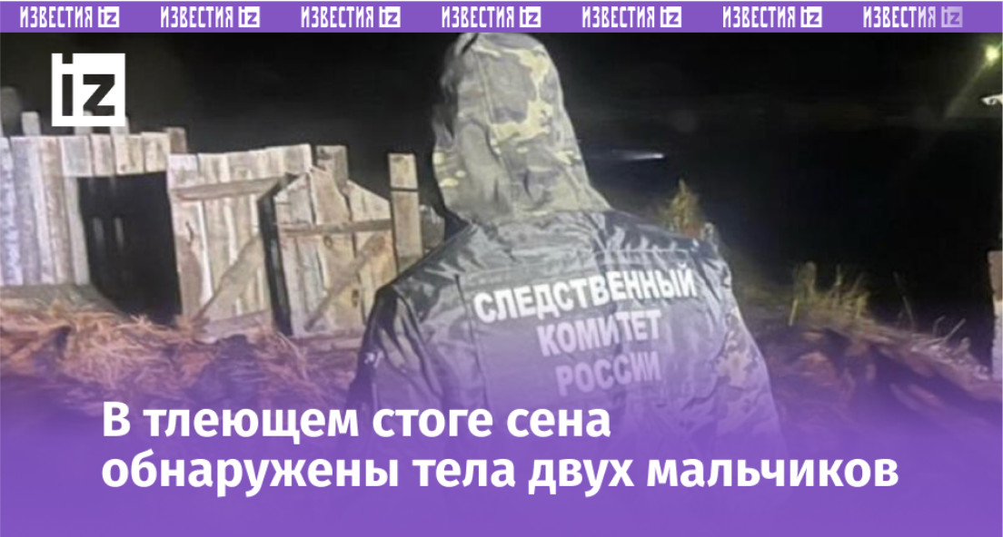 Тела двоих детей обнаружили после тушения стога сена в селе Аниховка Адамовского района Оренбургской области. Об этом сообщили в телегам-канале регионального СК. "Произошло возгорание стога сена. В ходе тушения пожара на месте происшествия обнаружены тела двоих малолетних детей 11 и 13 лет", – заявили в ведомстве. Возбуждено уголовное дело по статье "Причинение смерти по неосторожности". Об этом упоминается в материале на сайте телеканала РЕН ТВ. Другие подробности произошедшего устанавливаются. РЕН ТВ в мессенджере МАХ – главный по происшествиям