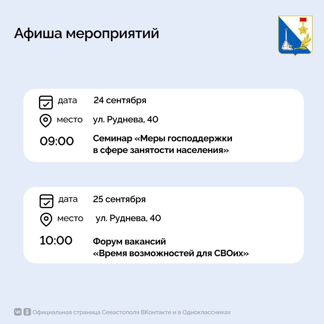 Бесплатные мероприятия Кадрового центра «Работа России» пройдут с 22 по 26 сентября. Расписание — в карточках. Вопросы — по телефону +7(8692)66-22-92