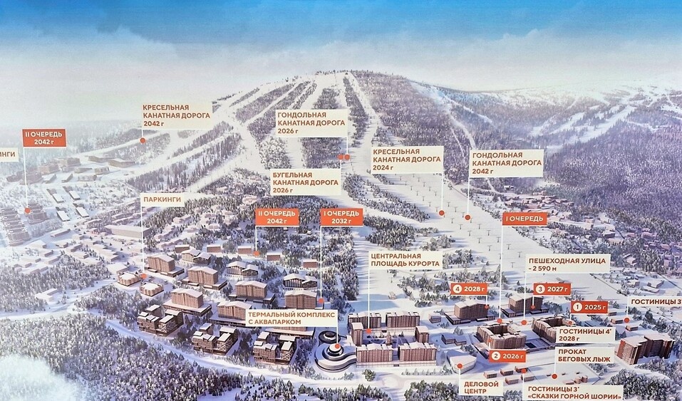 В 2025 г. в Шерегеше будет завершено строительство первого отеля горнолыжного курорта «Шермонт». Проект реализуется в рамках комплексного развития территории в пять этапов ― до 2042 г. Со временем курорт планируют сделать всесезонным не только благодаря термальному комплексу, но и за счет площадок для летних видов спорта и туристических маршрутов. Сейчас, на первом этапе, возводится два отеля. Первый почти достроен — ведутся фасадные и внутренние работы. Планируемый срок сдачи — конец текущего года. Он начнет функционировать уже в предстоящем сезоне 2025-2026 гг. Второй отель будет сдаваться в июне 2026 г. Параллельно строится третий отель. Два первых отеля соединяет стилобатная часть, на крыше которой разместят открытый термальный комплекс площадью 4800 кв. м. Оператором отелей и термального комплекса станет сам девелопер. Для этого создана управляющую компания «Шермонт». В первом отеле предусмотрено 290 номеров, во втором — 328, в третьем — 179 номеров. В совокупности после завершени