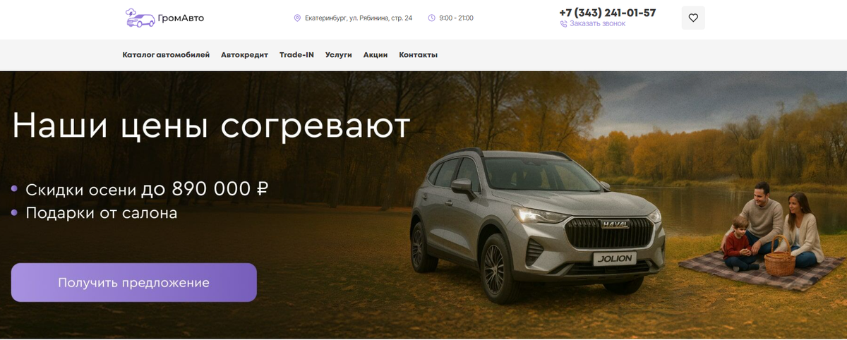 ГромАвто — это автосалон в Екатеринбурге. Напрямую связан с дилером из нашего черного списка. На владельца есть большое количество судебных исков о защите прав потребителей. Везде он выступает в качестве ответчика. В автосалоне на Рябинина 24 в Екатеринбурге можно купить новый автомобиль. Салон позиционируется как мультибрендовый. В каталоге более 20 марок. Реальное количество авто в наличии установить не удалось. К тому же, очевидно, что каталог сильно раздут. Например, в него включены модели, снятые с производства 3 года назад и, по официальным данным, давно закончились в свободной продаже. Также мы обратили внимание на цены. Они значительно ниже рынка. При этом в открытом доступе нет публичной оферты. Все это стало поводом для нашей проверки. Владельцем автоцентра ГромАвто является ООО «ЮРАЛ-ТРЕЙД» (ИНН 6685129317). Компания была зарегистрирована в 2017 году в Москве. По юридическому адресу зарегистрировано еще 306 организаций. Уставной капитал — 10 000 рублей. Есть налоговая зад