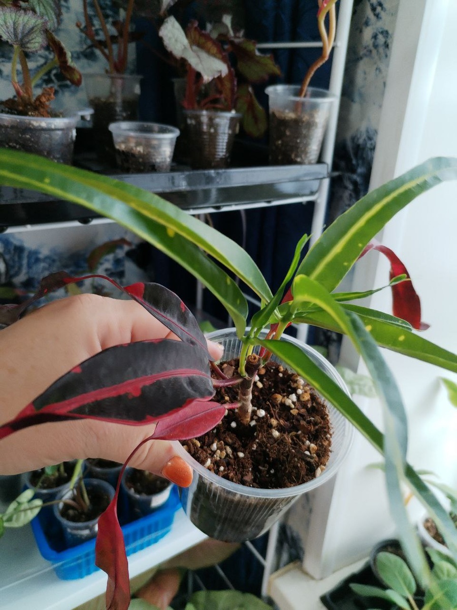 В ответ на пост 💦 Утра доброго. Почикала своего тайского друга, стали листья опадать🍃 и я решила хоть как-то сохранить сорт. На фото видно с пенька полезли новые листики ❤️. Макушка стояла совсем без листьев, палочкой в воде.🤪 Сейчас выпустила свои листочки, но корней пока нет (каллус образовался) Будем наблюдать. 🧐