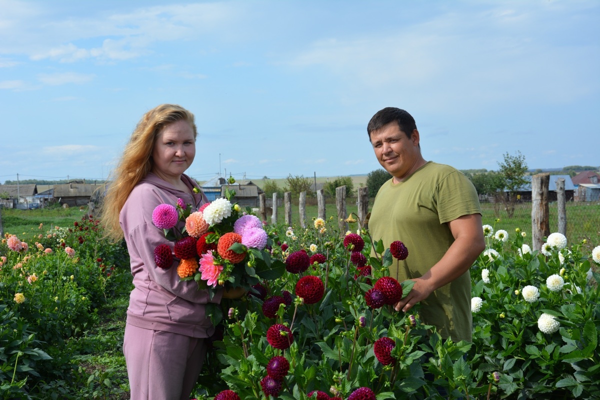 Семья Мустафиных выращивает редкие сорта цветов Всё началось с мечты о тишине и природе. Уроженец села Искандарово Айрат Мустафин построил на участке своего прадеда уютный дом, чтобы по выходным отдыхать здесь с семьёй от суеты уфимской городской жизни и наслаждаться свежим воздухом. Здесь, вдали от шума, они с супругой Лилией создали свой собственный мир: Айрат смастерил мебель для зоны отдыха, вместе они заложили плодово-ягодный сад, а Лилия с дочерьми Эльвиной и Эмилией занялись благоустройством двора, украшая его цветочными композициями. Сначала это были знакомые всем лилии, гладиолусы и розы. Но с каждым годом палитра красок становилась всё богаче: в саду появились ранункулюсы, воздушная гипсофила, нежная матрикария, яркий гелихризум и многие другие виды. Сегодня коллекция насчитывает более ста тридцати сортов! Однако настоящей страстью Лилии стали георгины. Их величественные бутоны покорили её сердце, и сейчас на приусадебном участке можно насчитать более двадцати разновидностей