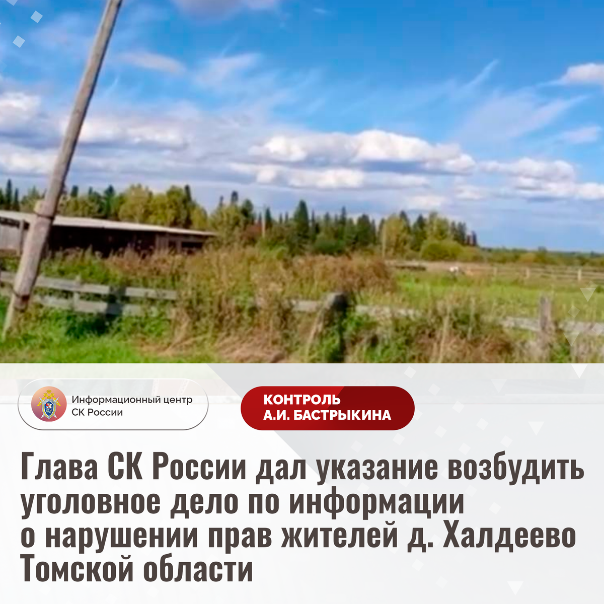 Глава СК России дал указание возбудить уголовное дело по информации о нарушении прав жителей д. Халдеево Томской области