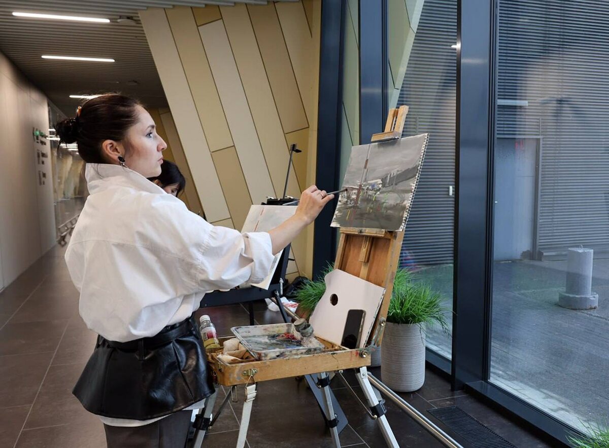 🎨 В аэропорту газовой столицы прошёл первый авиапленэр Новоуренгойские художники в течение нескольких часов писали картины с натуры, любуясь видами из окон воздушной гавани. Панорамное остекление позволило талантливым девушкам запечатлеть подготовку рейсов, движение аэродромной техники, да и в целом, жизнь аэровокзала. Свои наброски художницы закончат уже в студиях, а пока смотрите фото с мероприятия. 📷: Аэропорт Нового Уренгоя ❤️ НУР. Официально | Подписаться в MAX