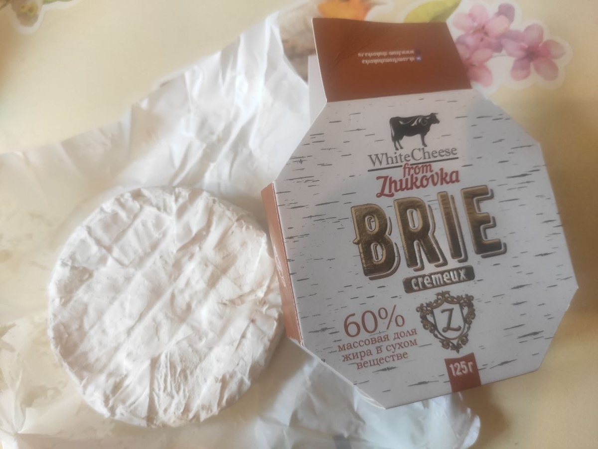 Этот сыр бри от Жуковки неожиданно быстро созрел, стал текучим. И это произошло почти за месяц до окончания срока годности. Наверное, хранился при более высокой температуре, чем обычно. Тем не менее, получилось довольно вкусно!