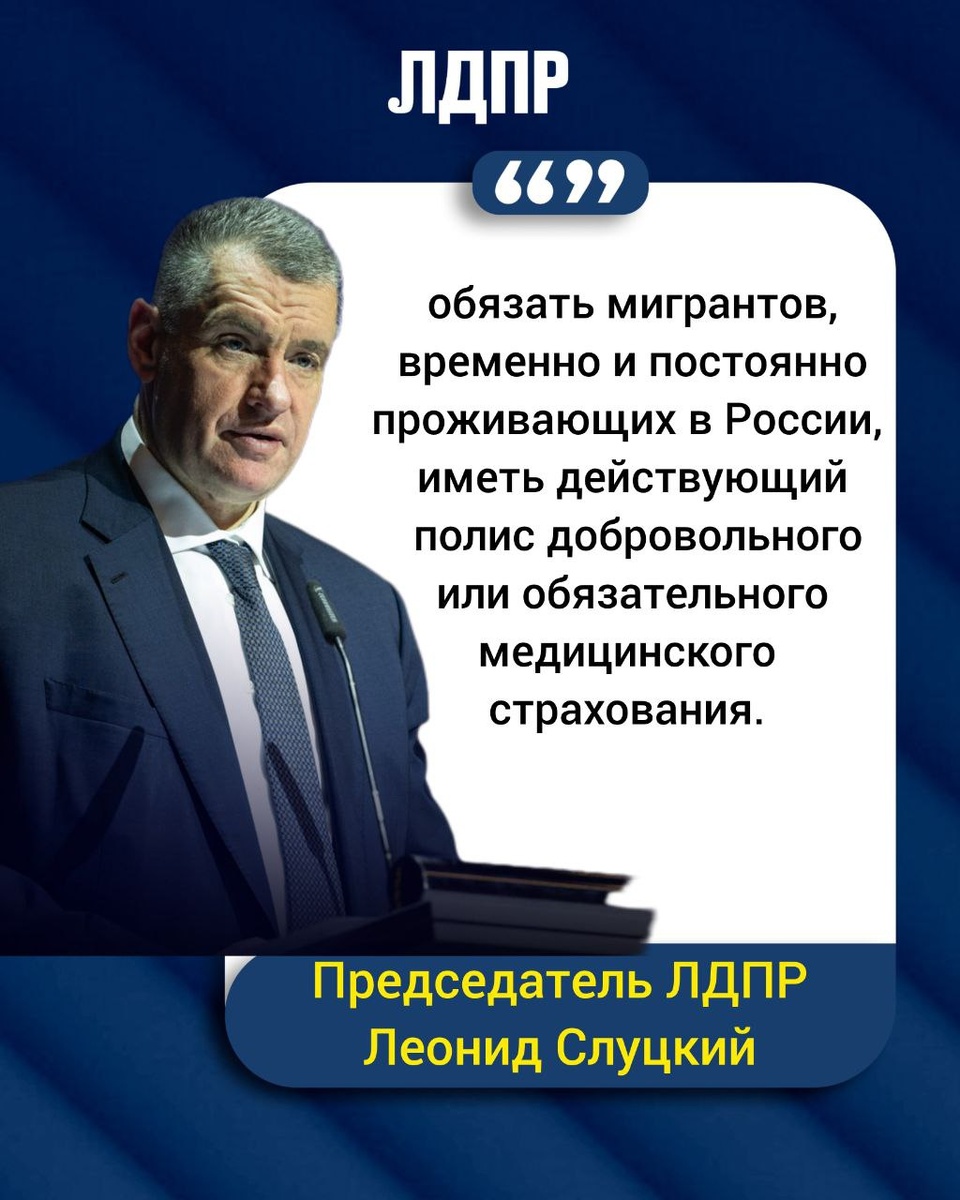 Депутаты фракции ЛДПР в Госдуме выступили с инициативой, обязывающей всех мигрантов, временно и постоянно проживающих в России, иметь действующий полис медицинского страхования. Основная цель предложения, по мнению авторов, заключается в снижении нагрузки на российский бюджет и систему здравоохранения. Председатель ЛДПР Леонид Слуцкий подчеркнул, что мигранты, приезжающие на работу, должны быть не только законопослушными, но и здоровыми. «Мы не вправе перегружать систему здравоохранения заботой о чужаках», — заявил Слуцкий, акцентируя внимание на необходимости направления средств в бюджет на СВО, социальную поддержку граждан и другие неотложные задачи. Леонид Слуцкий также упомянул, что в прошлом году в Россию прибыло более 6 миллионов мигрантов, и призвал к усилению миграционного контроля. Законопроект предусматривает, что подтверждение наличия страхового полиса (ДМС или ОМС) станет одним из условий для получения разрешения на временное проживание в РФ.