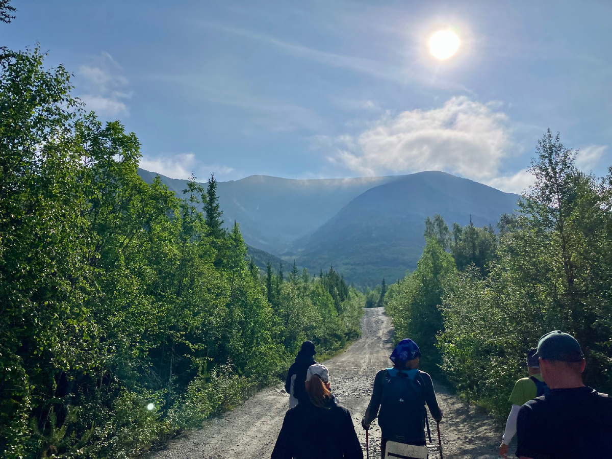 Когда группа оказалась между пиком Марченко и горой Каскасньюнчорр, зелёная растительность сначала уступила место лишайникам, покрывающим каменистую почву, а потом нашими спутниками вновь стали серо-коричневые острые камни. Начался подъем на перевал.