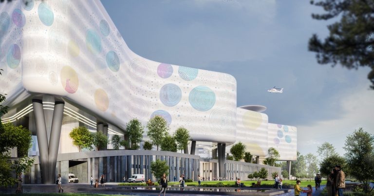 Российская детская клиническая больница (РДКБ) расположена недалеко от метро «Университет дружбы народов». Архитектурная концепция была разработана одним из участников закрытого конкурса на проект больницы — бюро UNK. Конкурс проводился еще в 2024 году, но его результаты так и не были объявлены. Проект публикуется впервые. Визуализации показал телеграм-канал «Стройки — и точка». Выглядит здание непривычно весело — оно оформлено в разноцветный горошек (вообще похоже на мыльные пузыри). Даже сложно поверить, что это медицинское учреждение, а не какой-нибудь музей сладкой ваты или батутный центр. Впрочем, вполне укладывается в стиль эмоциональное техно и вызывает ассоциации с новым Большим Московским цирком, который построят в Мневниках. «Белый фасад с шелкографией делает здание легким и парящим над землей. Палаты оснащены большими окнами, которые пропускают много естественного света. Горизонтальные переходы между отделениями облегчают передвижение пациентов и персонала, улучшая доступнос